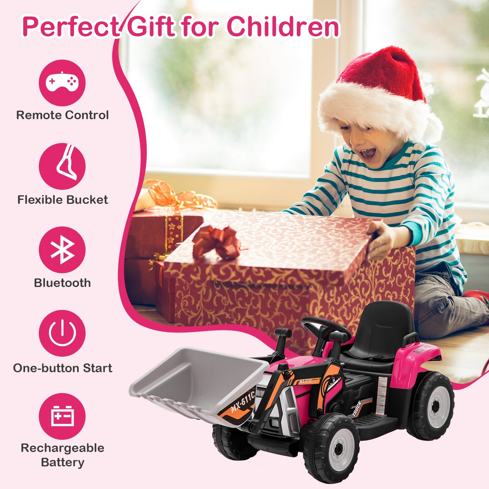 12V Battery Powered Kids Ride on Excavator with Adjustable Arm and Bucket-Pink