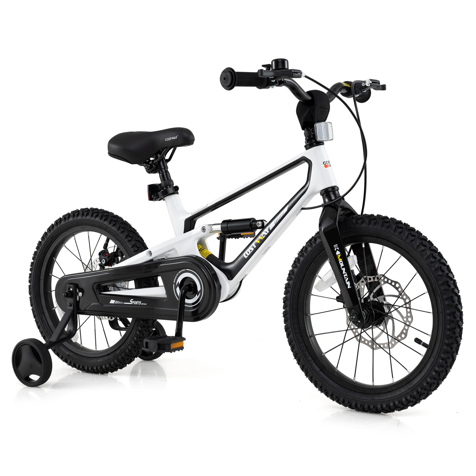 ● Adjustable saddle and handlebar ensure a suitable fit for several years● With high-strength and lightweight magnesium alloy construction● Dual disc brakes with stronger braking force longer service life ● The included bell and 4 reflectors provide added fun and security● Excellent shock absorption for a smooth riding ● Full-enclosed chain guard keeps children safe ● Perfect for beginners with the training wheels● Anti-skid grips and pedals for enhanced safety ● Wear-resistant rubber tires for long-lasting use● Internal rear brake cable design for a neat look ● 95% pre-assembled for hassle-free installation● Complies with ASTM and CPSIAInstallation guide