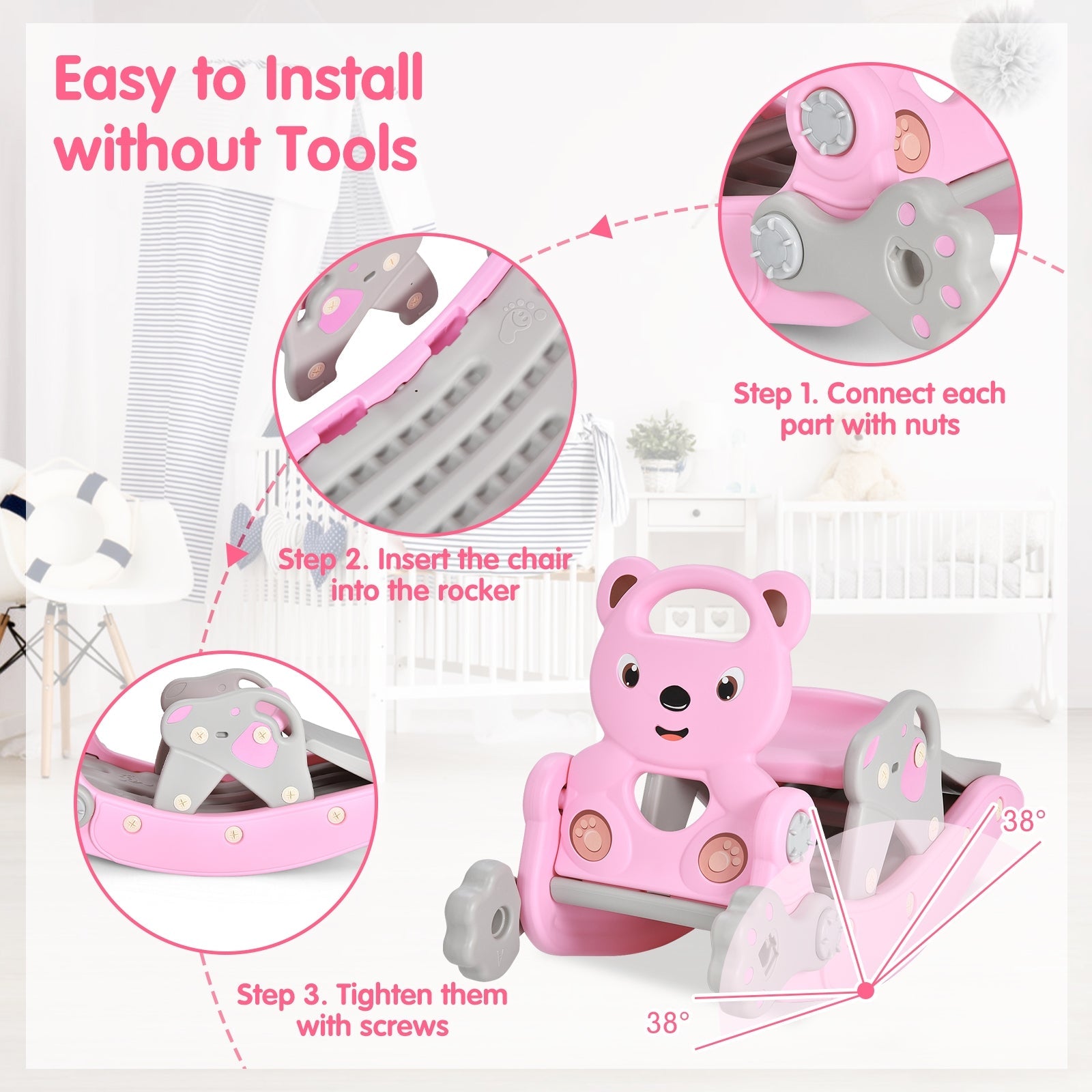 4-in-1 Toddler Slide and Rocking Horse Playset with Basketball Hoop-Pink