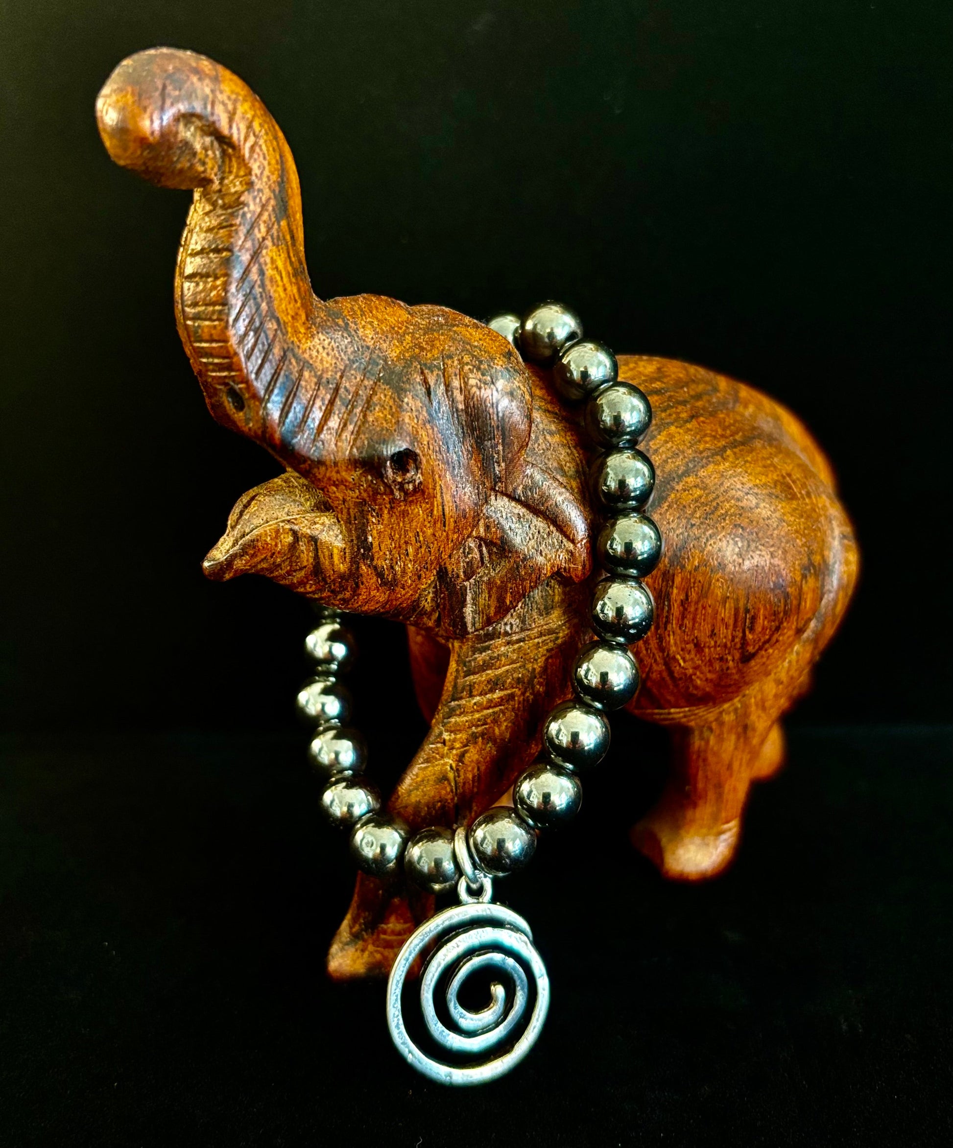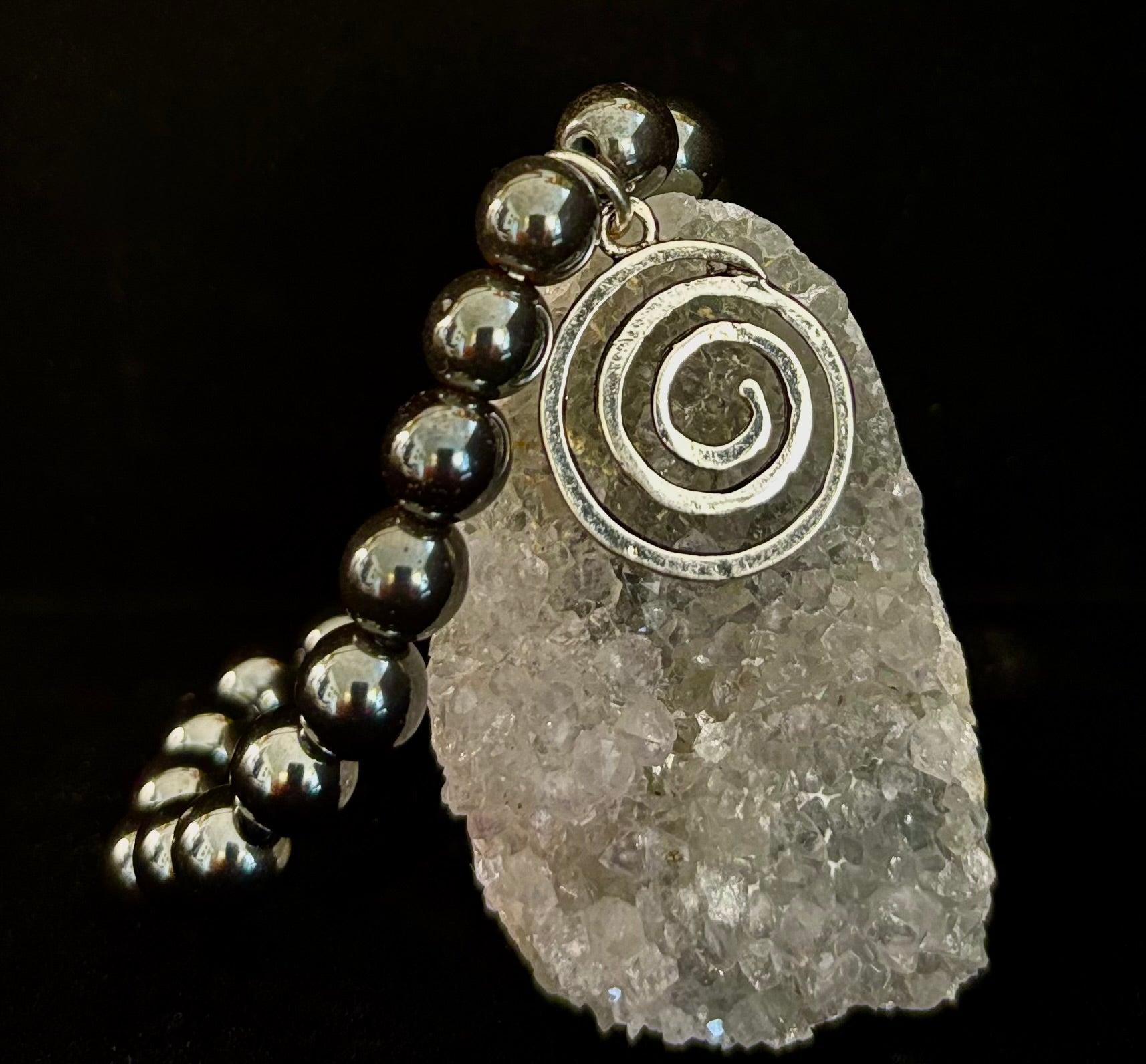 ⚙️ Hematite – Gratitude & Grounding | Spiral Charm