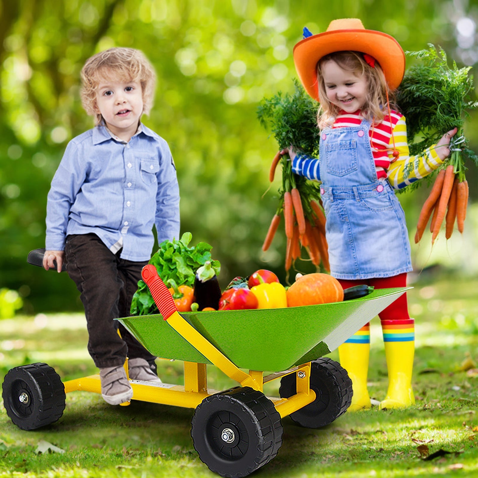 ● Sturdy steel frame: Constructed by a stainless steel frame features weather resistance. Paint in eco-friendly paint which is secure for your kids to play ● Large dig volume: Dig as much sand as possible with its large volume. Scooping and dumping actions improve hand-eye coordination ● Non-slip handle: It offers your kids a comfortable sense of while playing and they can maneuver more conveniently ● All-terrain wheels: Rolling wheels encourages kids to move around to gain a new perspective on task. With 88 lbs weight capacity your kids can play with it from 4 - 12 years old which will be a great toy to accompany them growing up ● All-season play: It is a nice birthday gift a Christmas gift for your kids! They can not only dig sand/dirt in summer but also shovel snow in winter