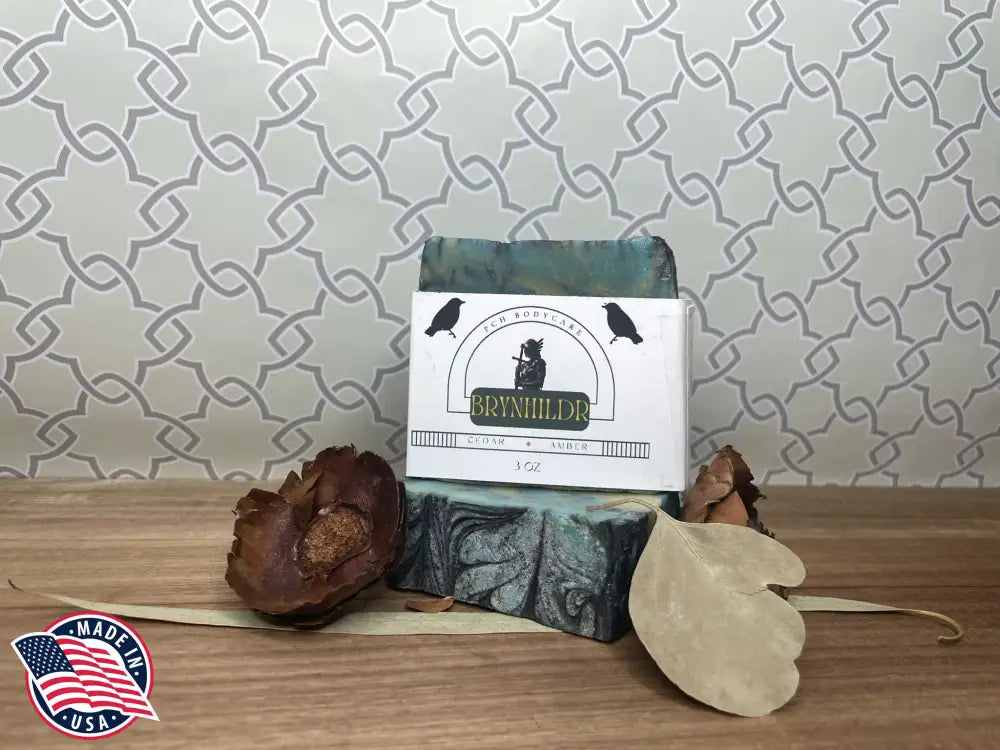 Indulge in luxury and sophistication with Brynhildr soap bar. Our premium soap bar is made with all-natural ingredients including olive, coconut, rice bran, almond, and castor oils, infused with fragrance oil and Mica powder for a vibrant coloring. Pamper yourself with this exclusive artisanal creation. - Bar. 3 oz.