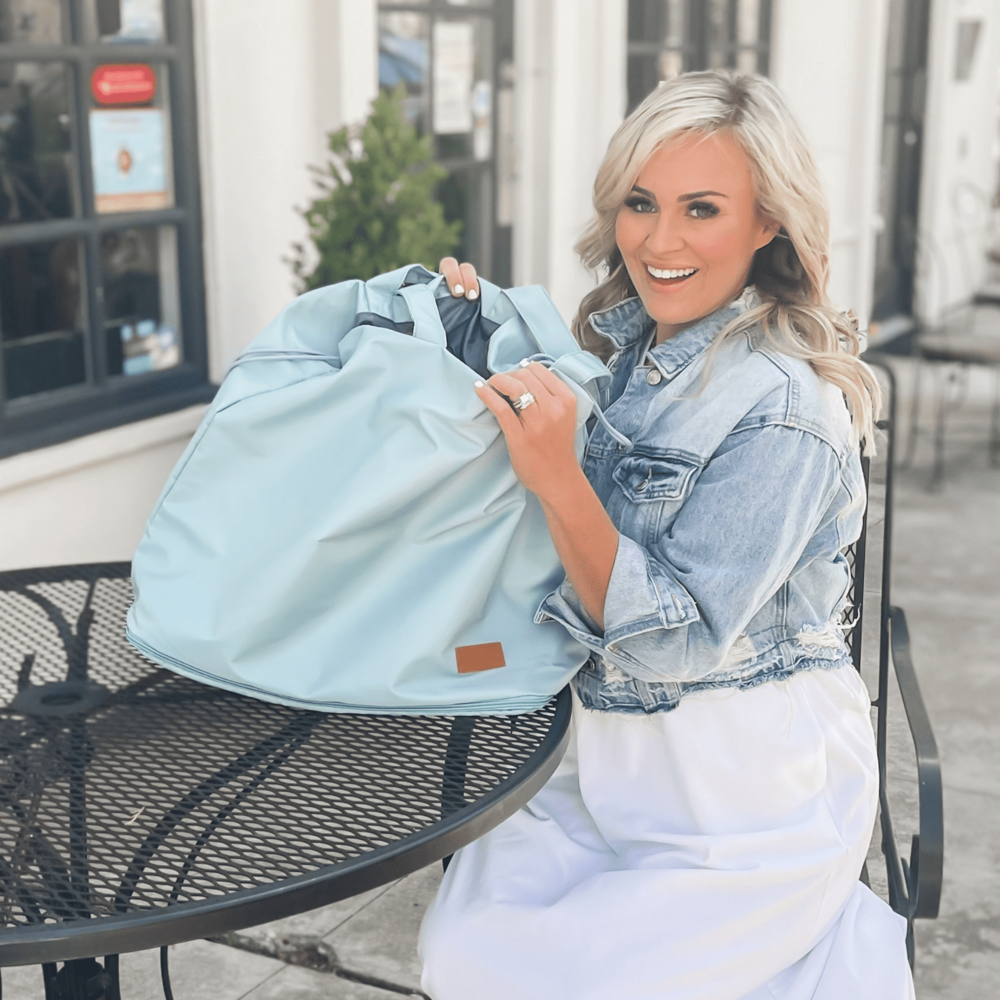 Designed to last, the Carry All Tote is the perfect blend of function, style, and size to take on the go! Great for the beach, kids sporting events, gym, or overnight bag. This is a must have everyday carry-all when space and comfort is important. Top cinch closures for quick access to the over sized interior with additional exterior and interior pockets give extra tuck away spaces. Store shoes, towels or other bulky items inside the durable bottom zipper compartment.