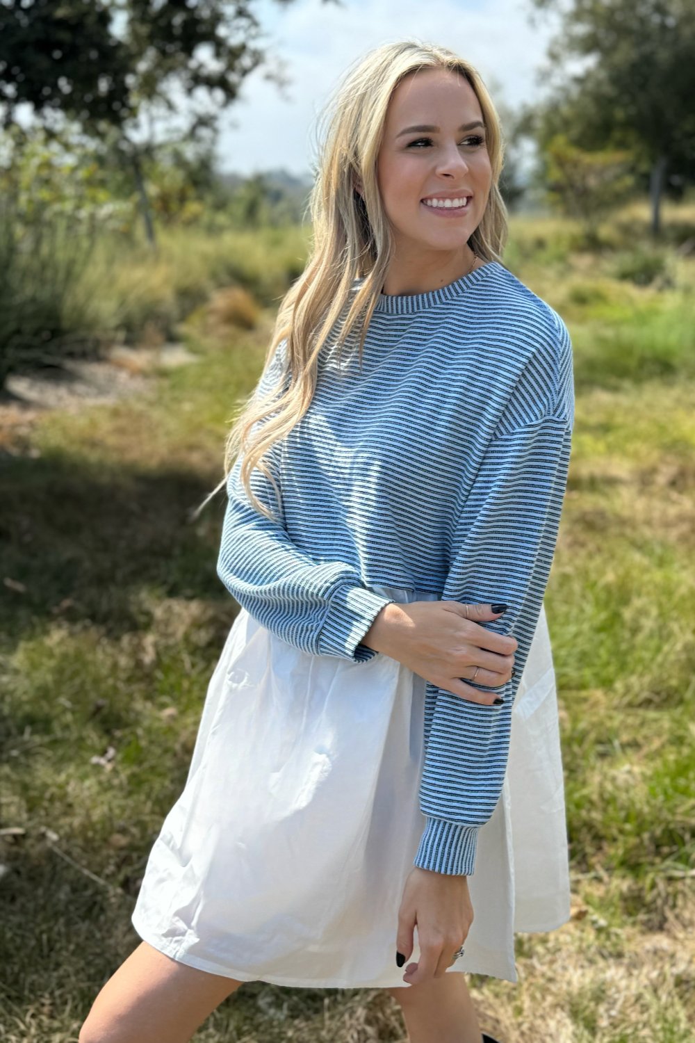 Inject some quirk into your wardrobe with this playful Chloe dress featuring a one-of-a-kind striped patchwork design. The charming pleated details add an elegant touch, while the high waist accentuates your lovely long legs. Don't worry about feeling restricted, the loose fit guarantees both comfort and freedom of movement.