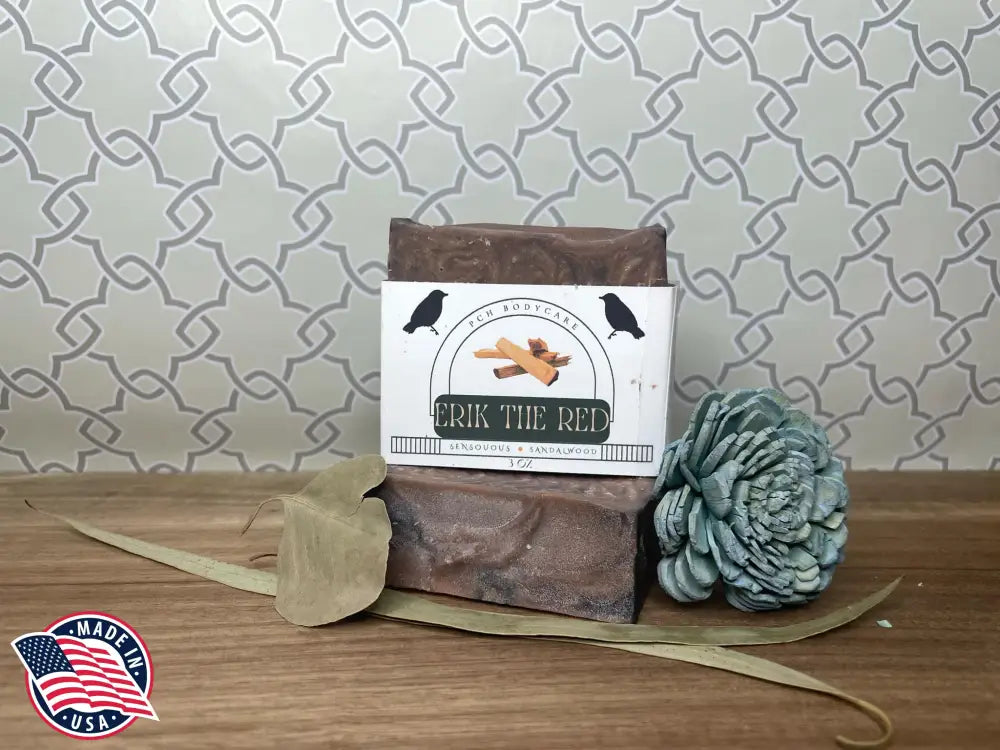 Elevate your self-care routine with Erik the Red - Bar. Crafted with a luxurious blend of natural ingredients like olive, coconut, and almond oils, and infused with a subtle hint of fragrance, this soap bar will leave your skin feeling nourished and rejuvenated. Indulge in the art of self-pampering with Erik the Red - Bar. 3 oz.Â