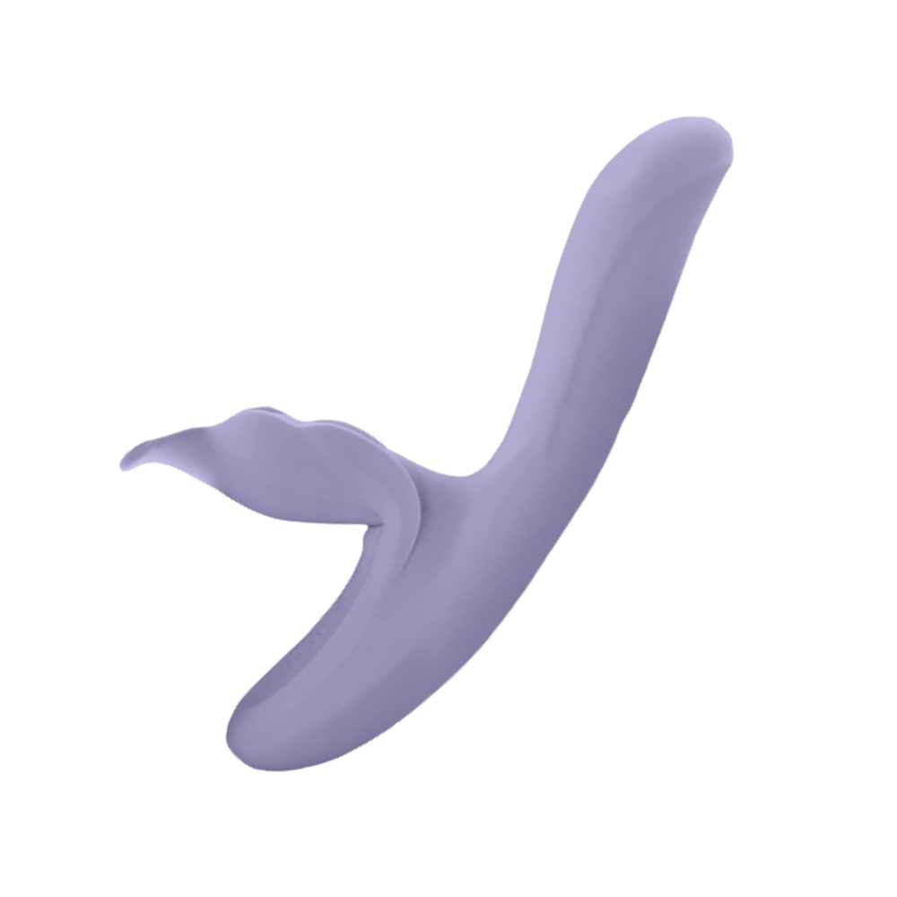 - A soft silicone stimulator with a large, petal-shaped surface.
